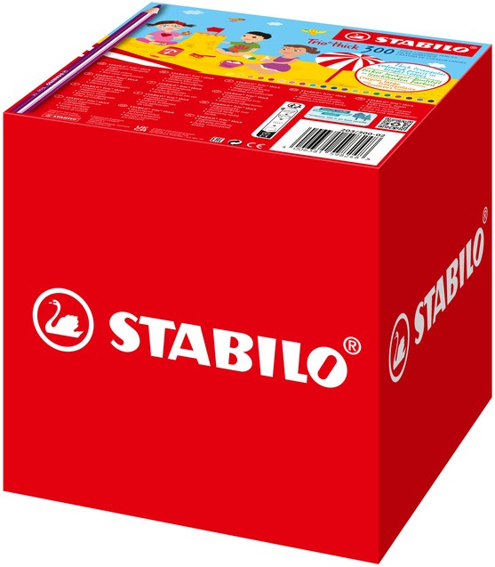 Het STABILO Trio Thick kleurpotlood is ideaal voor kleine kinderen. De dikke driekantige vorm van het potlood biedt een ontspannen grip en moedigt kinderen aan de juiste schrijfhouding aan te nemen. De kleuren zijn zeer intens en de potloden geven zeer gemakkelijk veel kleur af. Driehoekig kleurpotlood STABILO Trio thick Classpack met 300 potloden.