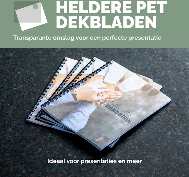 • Transparante voorbladen, ideaal om te gebruiken als voorkant om uw ingebonden document te presenteren.