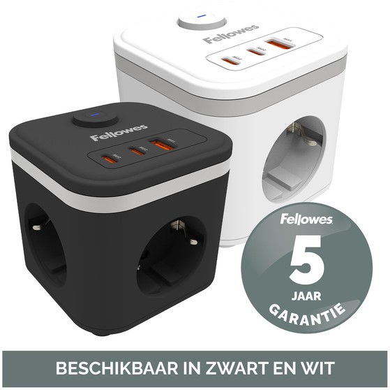 • Uitgerust met 3x stopcontact (230V), 1x USB A (18w max)- en 2x USB C-poorten (20w max).