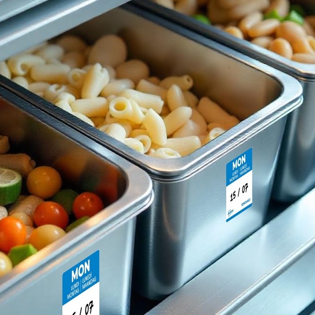 Gekleurde voedsel-dagetiketten zijn essentieel voor efficiënt voorraadbeheer in de horeca. Ze maken het mogelijk om de bereidings- of openingsdatum van voedsel nauwkeurig te volgen. Dankzij een kleurcode per dag identificeert men in één oogopslag de producten die met voorrang gebruikt moeten worden. Dit helpt voedselverspilling te beperken en zorgt voor een optimaal voedselgebruik. Met deze labels voldoet men aan de HACCP-normen en vergemakkelijkt men de controle van de houdbaarheidsdatum. Dankzij de afneembare lijm zijn ze eenvoudig aan te brengen en te verwijderen. Ze kunnen worden gebruikt op alle soorten verpakkingen. In de keuken verbeteren ze de communicatie tussen teams door verwarring over de versheid van de producten te voorkomen. Het gebruik van daglabels betekent dagelijks tijd besparen en tegelijkertijd servicekwaliteit garanderen. Door te investeren in dit efficiënte etiketteringssysteem optimaliseren horeca-eigenaren zowel hun organisatie als hun winstgevendheid.