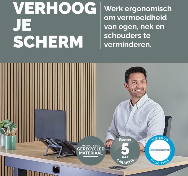 • Breng je laptop in een comfortabele kijkpositie, zodat je ogen, nek en schouders minder worden belast.