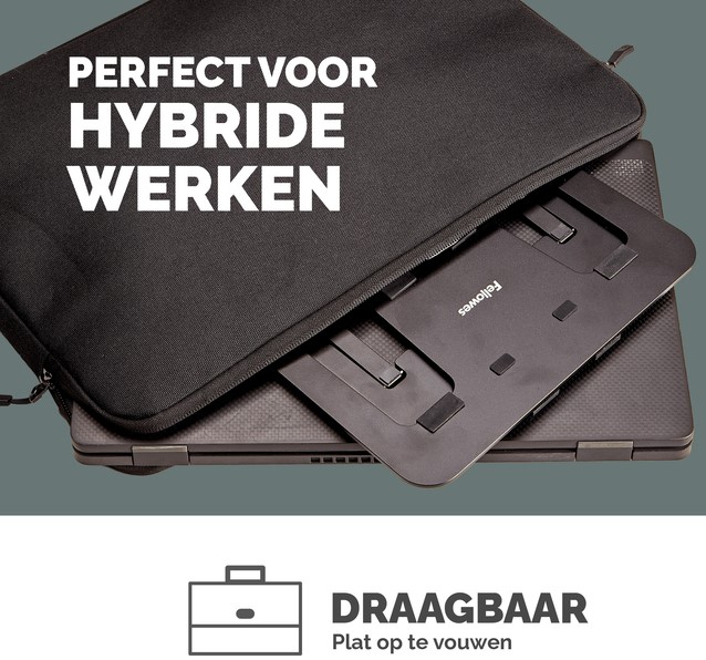 • Lichtgewicht ontwerp, plat opvouwbaar voor eenvoudig opbergen of onderweg, perfect voor hybride werken.