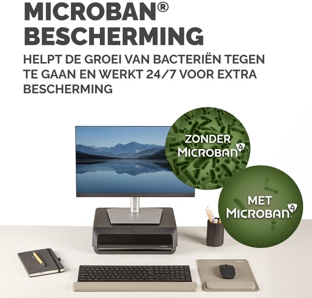 • De ingebouwde Microban®-bescherming helpt bacteriën tegen te gaan en werkt 24/7 voor extra bescherming van het product.