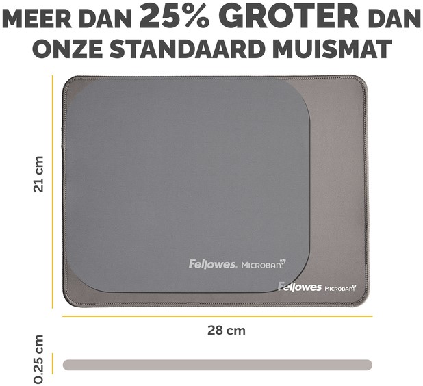 • Meer dan 25% groter dan onze standaard muismatten voor meer bewegingsvrijheid, waardoor kleine herhaalde bewegingen die pijn in de pols kunnen veroorzaken, worden verminderd.