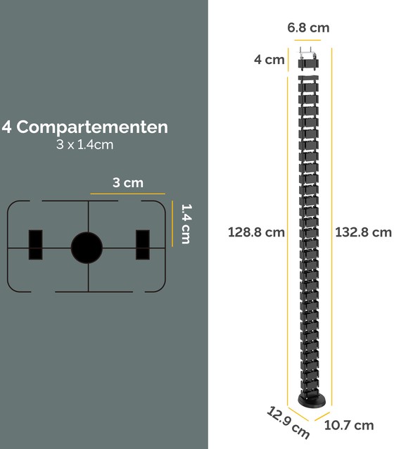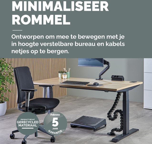 • Organiseer en leid kabels moeiteloos van de vloer naar het bureau met deze kabelslang voor een schone, opgeruimde werkplek.