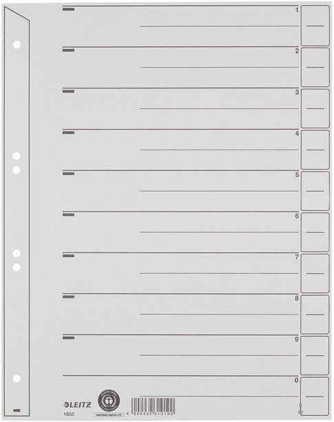 SCHEIDINGSBLADEN LEITZ 1650 KARTON A4 200GR GRIJS 100 Stuk