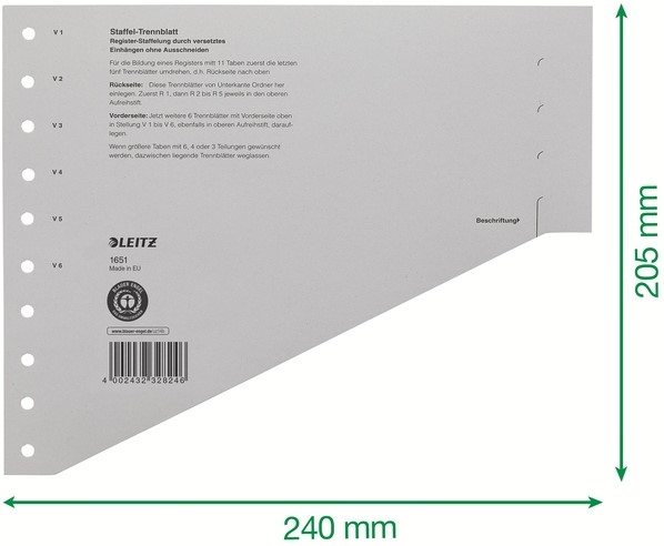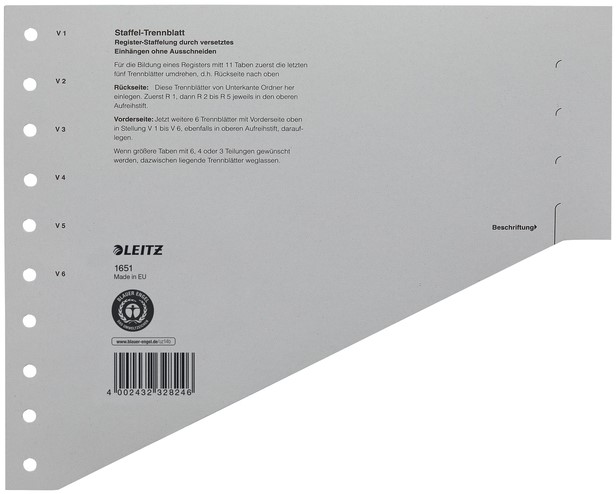 • A4 kartonnen tabbladen voor onderverdelingen in ordners of ringbanden.