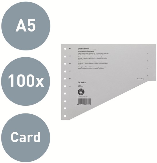 SCHEIDINGSBLADEN LEITZ 1651 KARTON A4 200GR GRIJS 100 Stuk