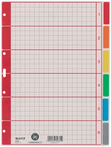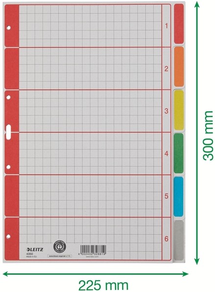 Tabbladen Leitz 4350 A4 4r karton 6dlg grijs 1 Stuk