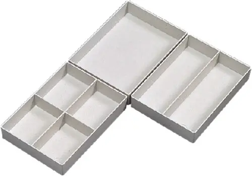 • Er passen 4 inzetbakjes van deze afmeting in 1 lade.