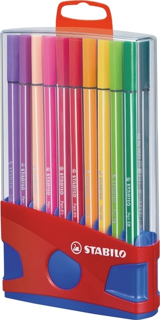 Viltstift STABILO Pen 68/20 rood/blauw etui M 20st 20 Stuk