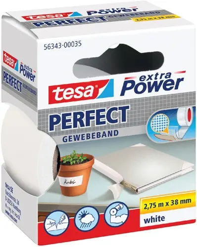 • tesa® extra Power Perfect is een zeer multifunctionele en hoogwaardige textieltape. Deze met textiel versterkte ducttape past bij uiteenlopende toepassingen binnen en buiten. De tape kan met de hand worden afgescheurd, is sterk en valt op door zeer goede kleefkracht.
