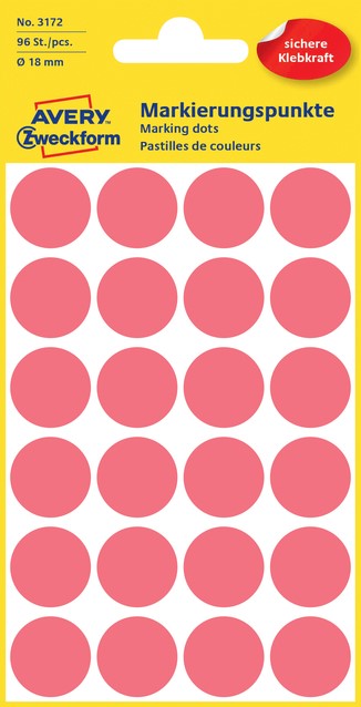 Etiket Avery 3172 rond 18mm lichtrood 96st 4 Vel