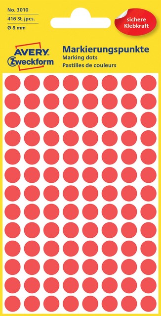 Etiket Avery 3010 rond 8mm rood 416st 4 Vel