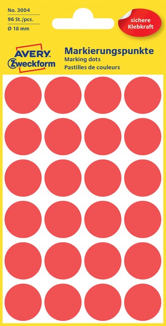 Etiket Avery 3004 rond 18mm rood 96st 4 Vel
