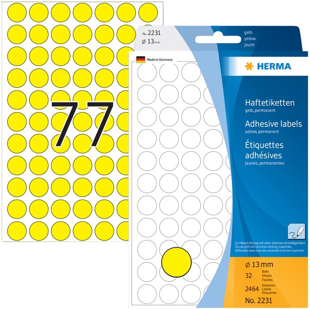 Etiket HERMA 2231 rond 13mm geel 2464st 32 Vel