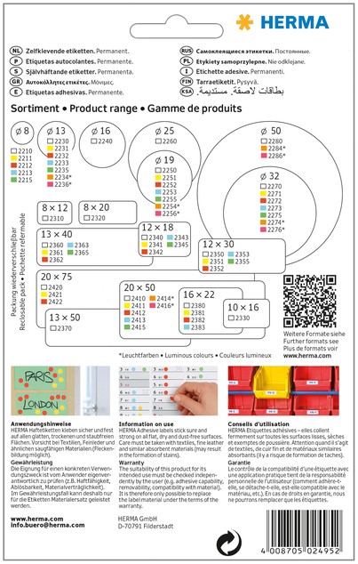 • Universele etiketten voor markeren, adresseren of organiseren.