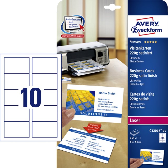 Visitekaart Avery C32016-25 85x54mm 220gr 250st 25 Vel