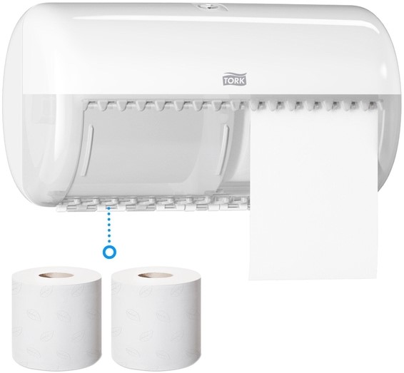 • Toiletten met beperkte ruimte hebben compacte oplossingen nodig. Onze Tork-toiletpapierdispenser is speciaal ontworpen voor kleinere sanitaire ruimten. De dispenser heeft een moderne uitstraling en is functioneel, zodat u een goede indruk maakt op gasten. Er is in deze toiletpapierdispenser uit de Elevation-lijn plek voor twee rollen. Personeel hoeft dus minder bij te vullen en gebruikers treffen minder snel een lege dispenser aan. Garandeer goede hygiëne met deze gesloten toiletpapierdispenser die het toiletpapier beschermt.De voordelen op een rijtje: