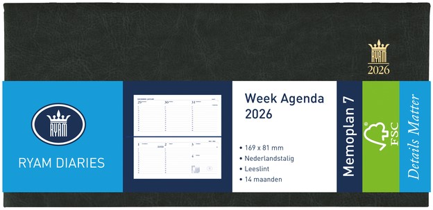 Agenda 2026 Ryam Memoplan 7 Mundior 7d/2p zwart 1 Stuk