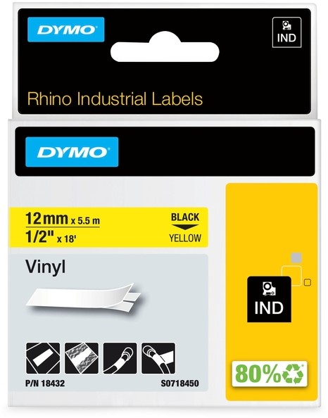 Labeltape Dymo Rhino industrieel vinyl 12mm geel 1 Stuk