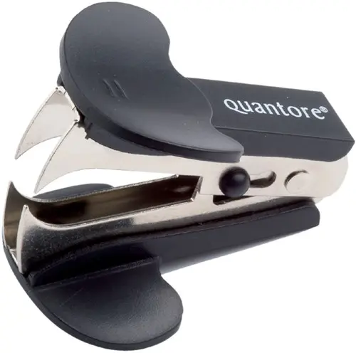 • De Quantore ontnieter zwart is een onmisbaar hulpmiddel voor iedereen die snel en netjes nietjes uit papier wil verwijderen. Dankzij de sterke en duurzame uitvoering is deze ontnieter perfect geschikt voor regelmatig gebruik, zowel thuis als op kantoor. Het compacte ontwerp ligt prettig in de hand en de stevige grip zorgt voor controle en comfort tijdens het gebruik. Bovendien voorkomt het slimme mechanisme beschadiging van je documenten. Het strakke zwarte design geeft de ontnieter een professionele uitstraling en maakt hem een stijlvolle toevoeging aan elke werkplek.Kenmerken: