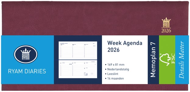 Agenda 2026 Ryam Memoplan 7 Mundior 7d/2p bordeaux 1 Stuk