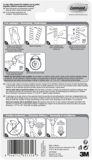 • De Command™ Ronde transparante kabelklemmen zijn onze innovatieve oplossing voor het veilig en zonder beschadiging organiseren van snoeren en kabels. Ze hechten sterk en laten na verwijdering geen sporen achter dankzij de 3M rekontgrendelingstechnologie.