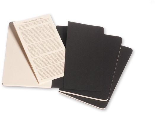 • Iedere set van 3 stuks bevat de Moleskine geschiedenis.