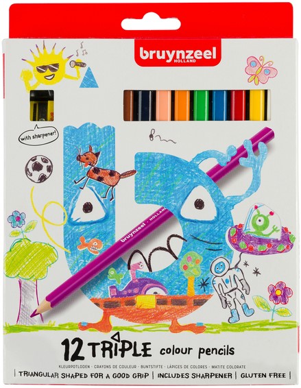 Kleurpotlood Bruynzeel Kids Triple set 12 kleuren 12 Stuk