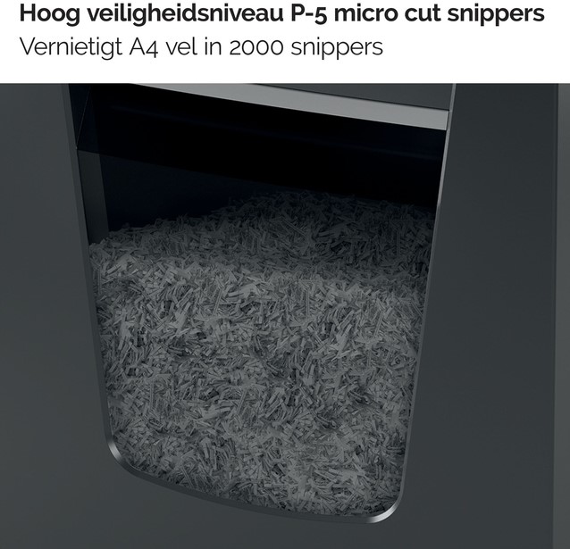 • Vernietigt tot 15vel tegelijkertijd in microsnippers van 2x15mm.