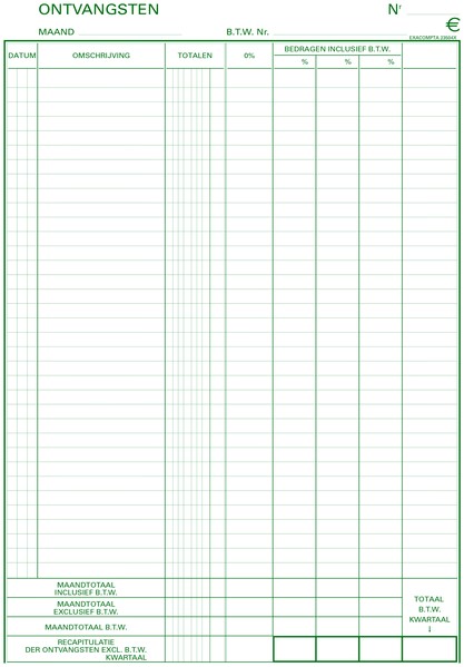 • In het ontvangstenboek kan men de ontvangsten chronoligisch registreren (inkomsten) en deze aan een derde partij (boekhouder, accountant) geven met behoud van een kopie.