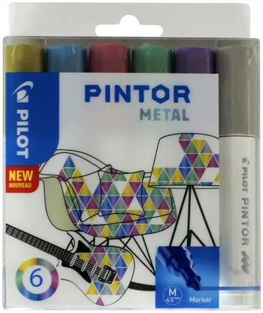 Verfstift PILOT Pintor metallic M assorti 6 Stuk