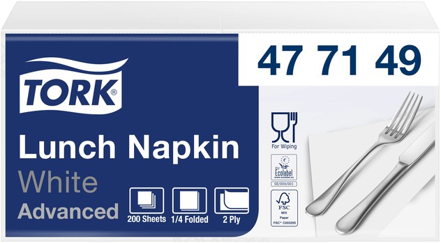 Lunchservet Tork Advanced vierdevouw wit 200 Vel
