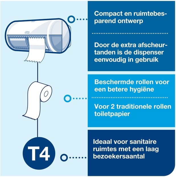 Toiletpapierdispenser Tork T4 duo wit 1 Stuk