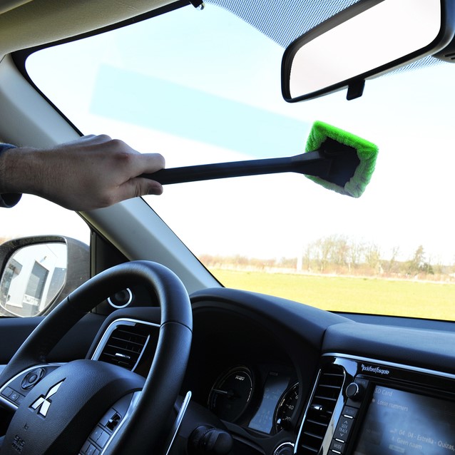 • Spray voor de beste werking direct een beetje reinigingsmiddel op de ruit (Niet op het microvezel-doekje).