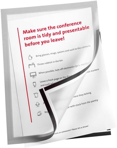 • Met het zelfklevende Infokader van Quantore A3 presenteer je documenten, posters of informatiebladen altijd overzichtelijk en professioneel. De zilveren rand geeft een strakke, moderne uitstraling en het magnetische zichtframe is zowel staand als liggend te gebruiken. Dankzij de zelfklevende achterzijde kleeft het stevig op alle vlakke oppervlakken en is het herpositioneerbaar zonder lijmresten achter te laten. Ideaal voor kantoren, winkels, scholen en openbare ruimtes waar informatie regelmatig wisselt. Verpakt per 2 stuks, zodat je direct meerdere plekken kunt voorzien van duidelijke communicatie. kenmerken: