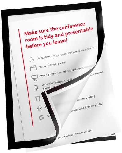 • Met het zelfklevende Infokader van Quantore A3 presenteer je documenten, posters of informatiebladen altijd netjes en professioneel. De zwarte rand zorgt voor een strakke, moderne uitstraling en het magnetische zichtframe is zowel staand als liggend te gebruiken. Dankzij de zelfklevende achterzijde hecht het stevig op alle vlakke oppervlakken en is het eenvoudig herpositioneerbaar zonder lijmresten achter te laten. Ideaal voor kantoren, winkels, scholen en openbare ruimtes waar informatie regelmatig wisselt. Verpakt per 2 stuks, zodat je direct meerdere plekken van duidelijke communicatie kunt voorzien. kenmerken: