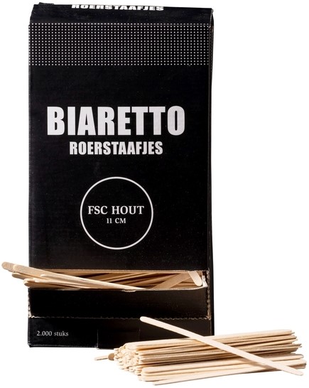 Roerstaafjes Biaretto hout 11cm 2000 stuks 2000 Stuk