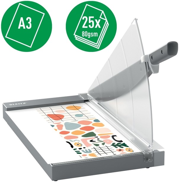 • De Leitz Precision Office Pro A3 snijmachine is ideaal om papier, labels, film, foto's, gelamineerde documenten, kaart en karton te snijden en perfect voor algemeen kantoorgebruik.