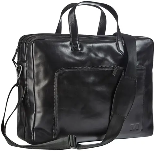• MAVERICK ALL BLACK lederen business tas met laptopvak 15,6".