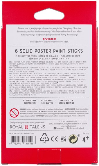 Verfstiften Bruynzeel Kids set 6 basiskleuren 6 Stuk