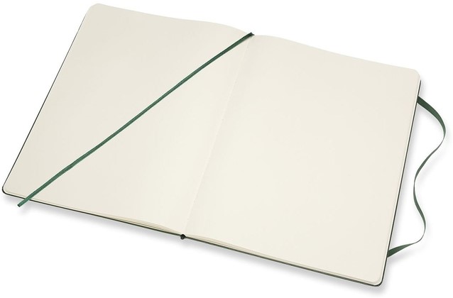 • Kenmerken: afgeronde hoeken, elastische sluiting, ivoorkleurig Moleskine-papier, bijpassend leeslint, papier: 70 gsm, zuurvrij, “In geval van verlies”-label op het schutblad, uitbreidbaar binnenvak op achterkaft.