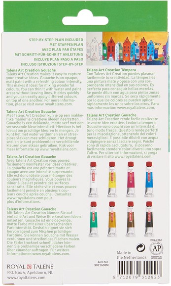 • Talens Art Creation gouache kan op verschillende ondergronden gebruikt worden zoals papier, karton en hout.