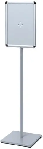 • Val op met de Posterstandaard Quantore ronde hoeken A3 – een stijlvolle en veelzijdige displayoplossing voor elke professionele omgeving. Dankzij de 25mm enkelzijdige kliklijst wissel je snel van poster, zowel in liggende als staande oriëntatie. De afgeronde hoeken geven deze standaard een moderne en toegankelijke uitstraling, perfect voor gebruik in retail, horeca of openbare ruimtes. De combinatie van een aluminium paal en frame met een poedergecoate stalen voetplaat zorgt voor een stabiele en duurzame constructie. Geschikt voor binnengebruik en beschutte buitenlocaties, is dit een betaalbare manier om jouw boodschap krachtig te presenteren.Kenmerken:
