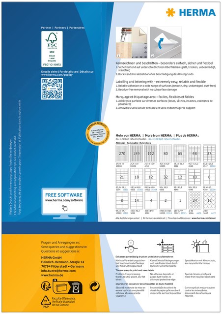 Etiket HERMA 10300 63.5x29.6mm verw wit 2700st 100 Vel