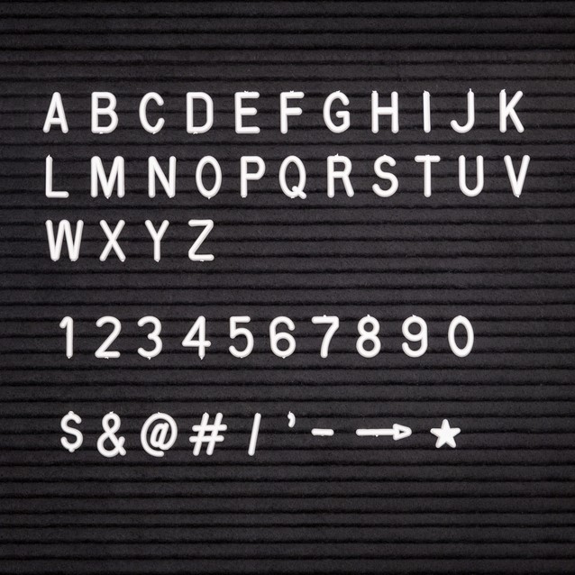 • Inhoud set: 330 witte letters en 120 cijfers.