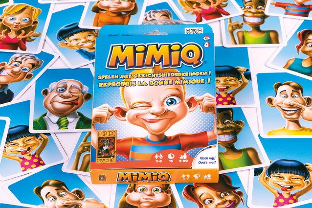 Kwartetten met gezichtsuitdrukkingen. Spaar setjes van 3 kaarten door gezichten te imiteren. Heb je een gevraagde kaart niet, steek dan je tong naar de ander uit. Educatief en ontzettend leuk! Grappig en leerzaam spel voor kinderen en hun ouders. Vraag kaarten aan elkaar door gekke gezichten te trekken. Heeft iemand een gevraagde kaart niet, dan steekt hij zijn tong uit. Wie de meeste setjes heeft verzameld, wint dit knotsgekke spel. In dit hilarische spel leren kinderen op een speelse manier gezichtsuitdrukkingen te maken, te benoemen en te gebruiken. Door de beperkte speelduur is Mimiq al voor heel jonge kinderen geschikt!
