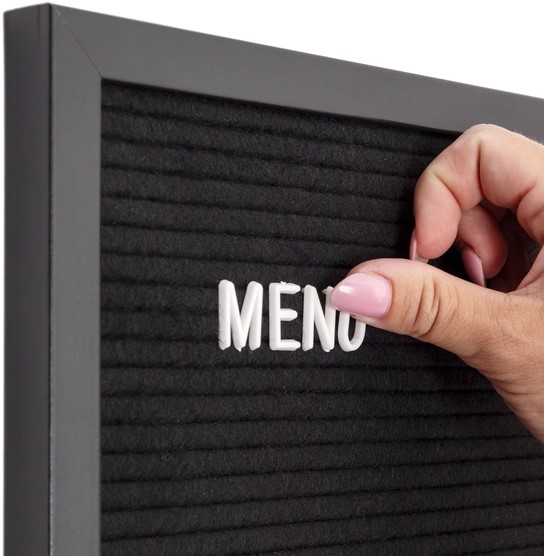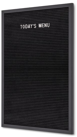 • Breng je boodschap stijlvol over met het IEZZY letterbord 40x60cm zwart hout. Dit vintage designbord is uitgevoerd met een zwarte vilten achtergrond en een strak zwart houten frame, wat zorgt voor een moderne en professionele uitstraling. Het compacte maar opvallende formaat is perfect voor gebruik in restaurants, winkels, kantoren of ontvangstruimtes. Met de bijgeleverde 330 witte kunststof letters en 120 cijfers creëer je snel een heldere en aantrekkelijke boodschap. De letters zijn eenvoudig te bevestigen en te verwijderen, waardoor je moeiteloos kunt wisselen van tekst. Of je het bord nu ophangt of op een balie plaatst – dit letterbord trekt gegarandeerd de aandacht. Kenmerken: