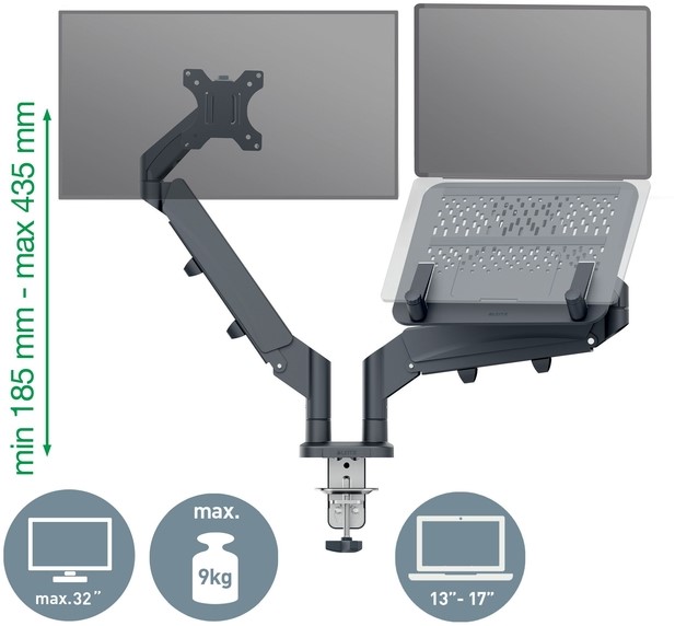 Monitor en laptoparm Leitz Ergo donkergrijs 1 Stuk